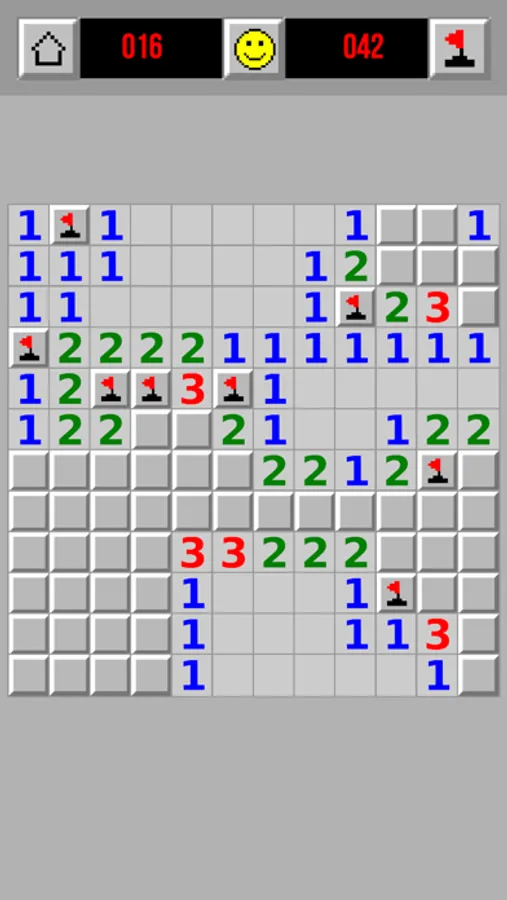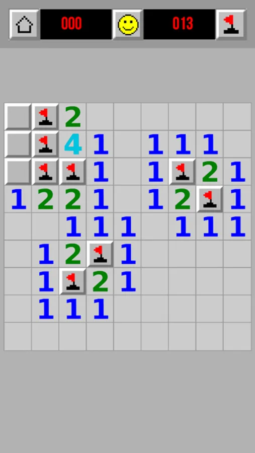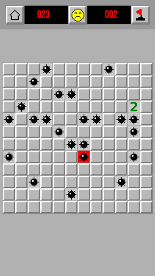 The aim of the game is to clear the mine field without hitting any of the mines. Tap on a mine and it is game over!