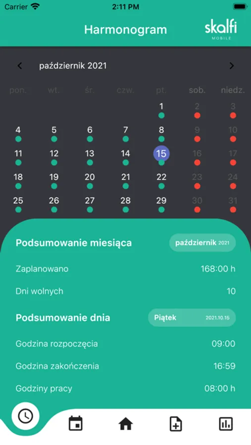 Aplikacja pozwala dodawać wnioski urlopowe, wnioski o odbiór godzin, awizować gości, sprawdzać swoje czasy pracy, pozwala zdalnie rozpocząć czas pracy.