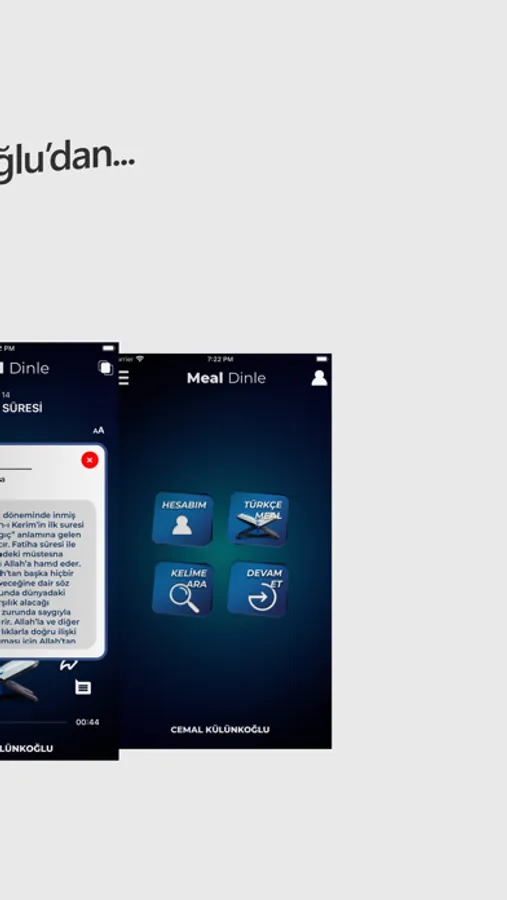 Listen to the Quran, from the surah explanations to the verse interpretations, from the pen of Cemal Külünkoğlu. While listening to his unique interpretations of the verses, you will almost feel the period of the Qur'an in your heart.