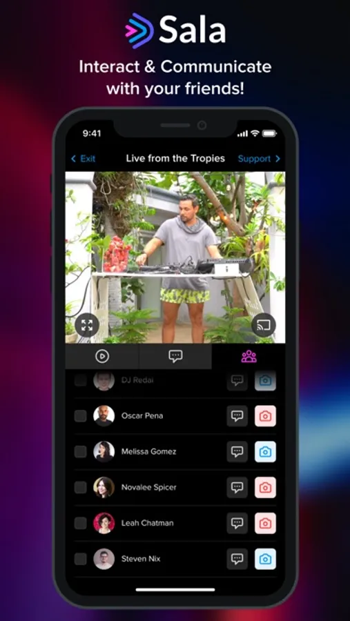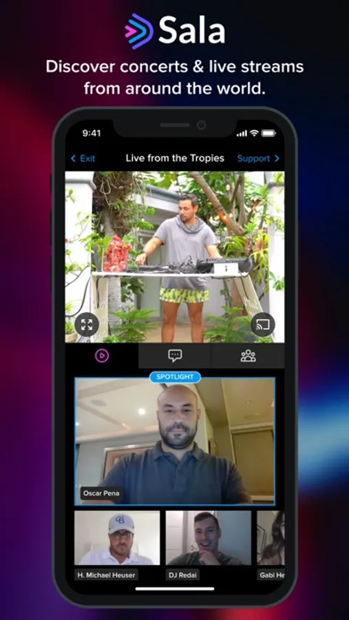 Attendees enjoy the magic of live concerts while engaging with friends and fans through interactive video and multi-layered chat. With multiple features of spotlighting, casting screens and automatic shuffling, SALA provides all the interactions of modern day virtual concerts.