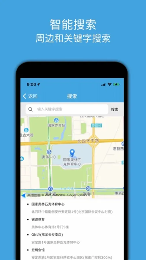 4.通过周边或关键字搜索功能来设置要测量的区域。