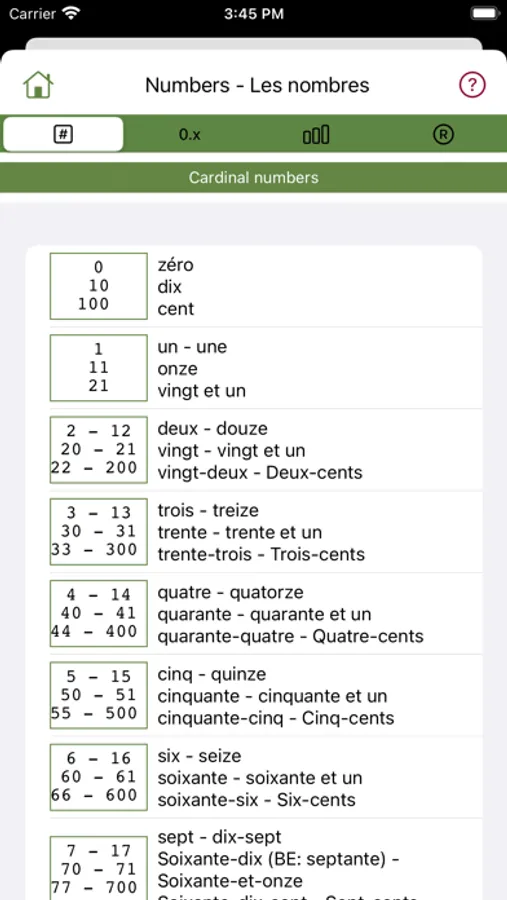 The app shows how to express times and dates, and contains many useful lists for the learner, such as abbreviations and signs. It even helps you to count and use mathematical expressions.