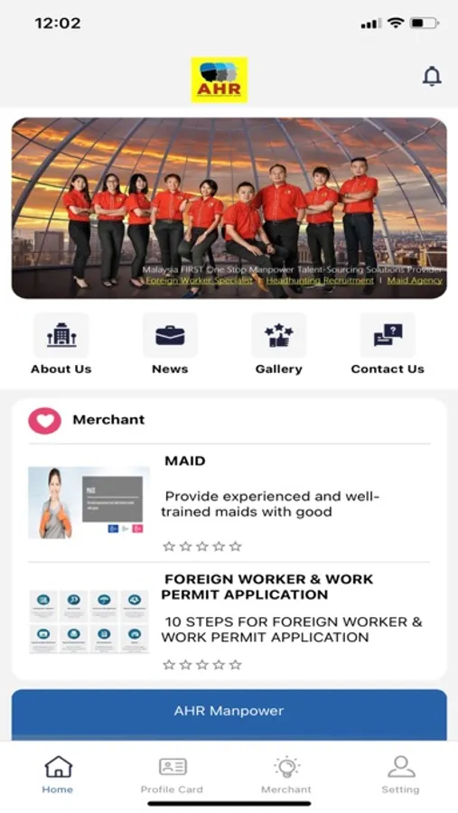 AHR is a community that user able to view all the latest news , businesses information , or any other interesting topics. User able to scan profile card to discover more about us.