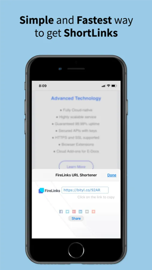 URL Shortening Service. It converts long URLs into short ones which are small in size, easy to remember and share on the internet. Just one click to get a shortlink for the current website URL in the Safari browser.