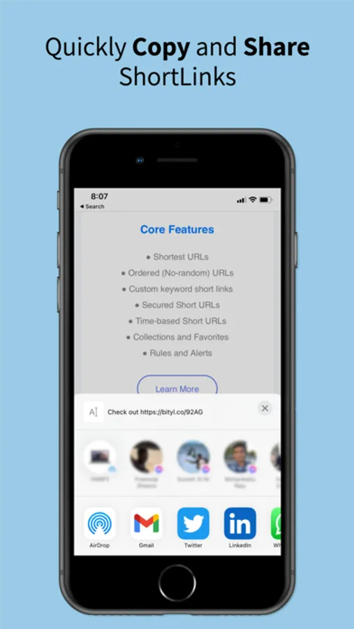 - Support Native share options like Copy, Email, SMS, Twitter, Facebook, etc.