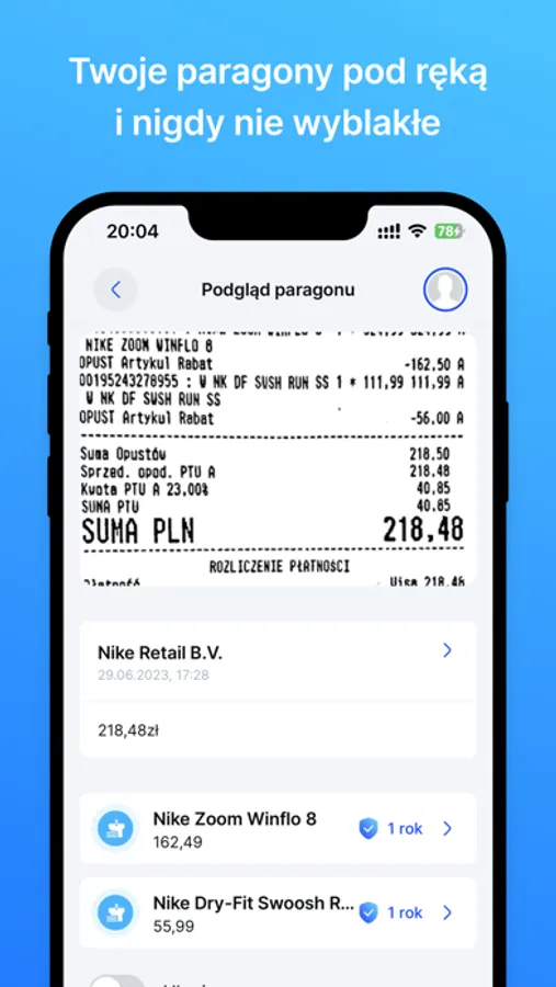 Skanuj i zapisuj wszystkie swoje paragony w formie cyfrowej! Wszystkie informacje zostaną automatycznie odczytane i zarchiwizowane. Nigdy więcej zagubionych paragonów!