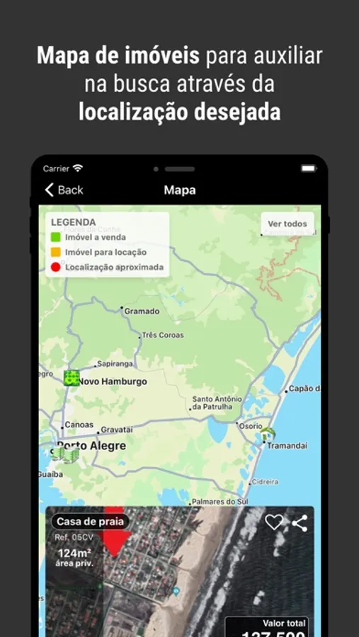 * Mapa com todos os imóveis para auxiliar na busca através da localização desejada;