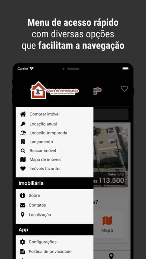 * Aplicativo exclusivo e personalizado com a cara da sua imobiliária;