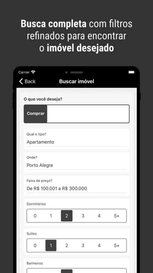 * Busca completa com filtros refinados para encontrar o imóvel ideal;