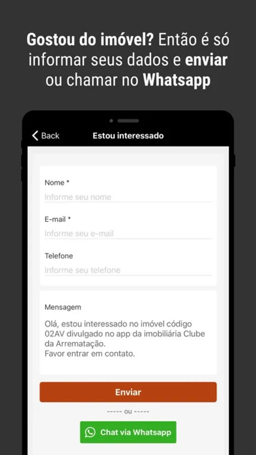* Solicitação de maiores informações ou contato direto via WhatsApp;