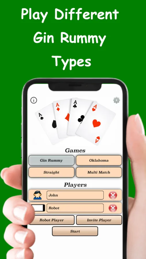 Play the Classic Gin Rummy or 3 other variations of the popular card game. Enjoy hours of fun playing a friend over your local Wi-Fi or challenge yourself playing the build in Robot Player.