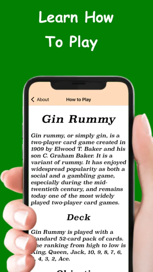 - Read the rules for Classic Gin Rummy or let the App guide you.