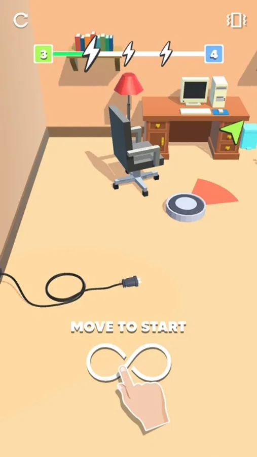 Guide the power plug with one finger. If you run into danger and want to go back, take your finger off the screen and let the cord retract the power plug.