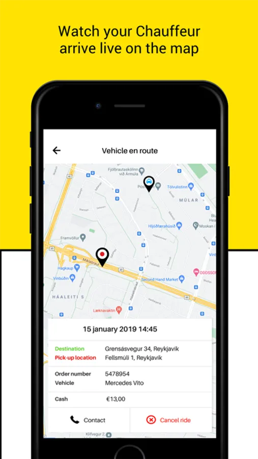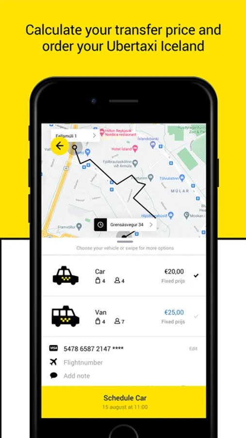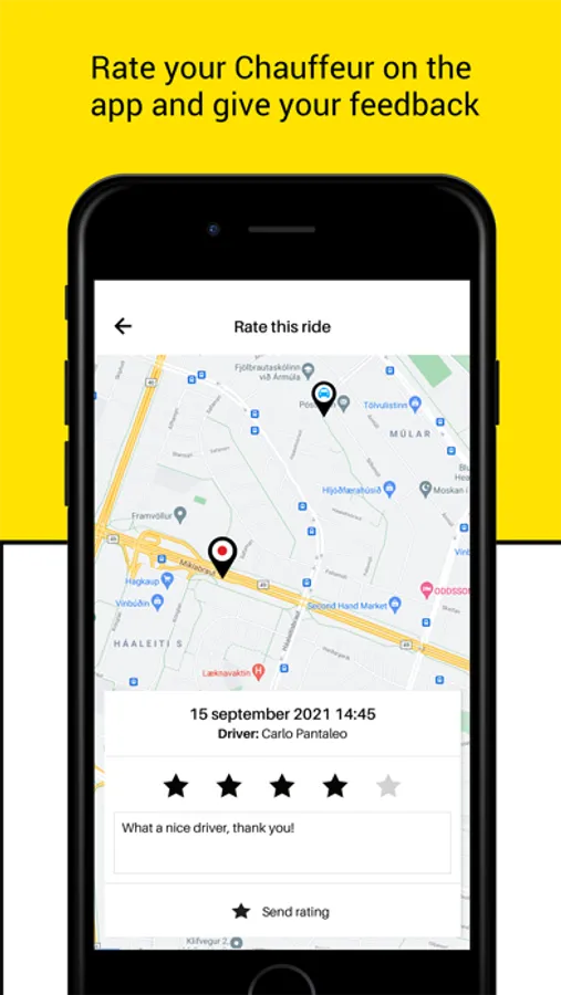Quick login with your Facebook, Google or Apple account or just enter your details. No cash in your pocket? No problem! The app allows several save payment options, like credit card or on account payments. Select your preferred payment method and link this to your account and receive your receipt by email directly after reaching your destination.