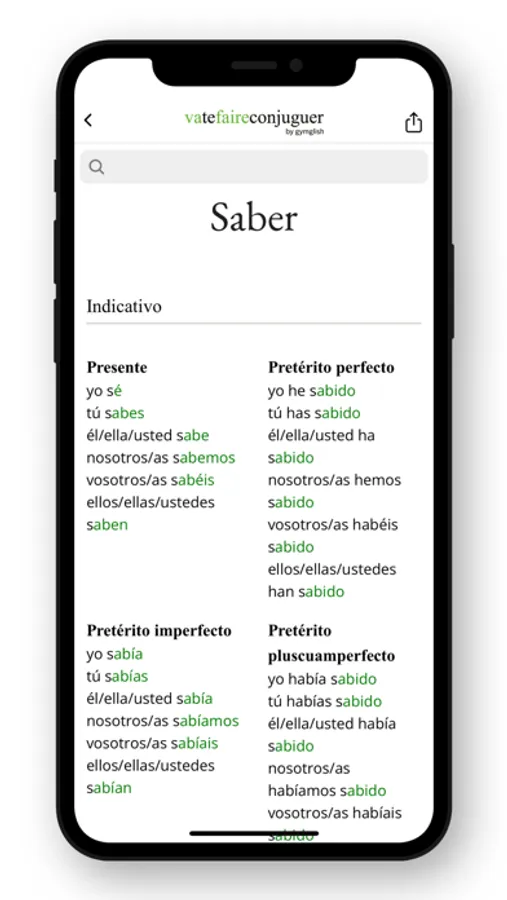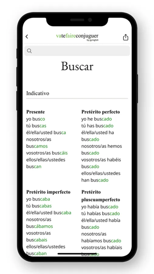 Vatefaireconjuguer, a free verb conjugation tool. Conjugate Spanish verbs with ease using this handy app.