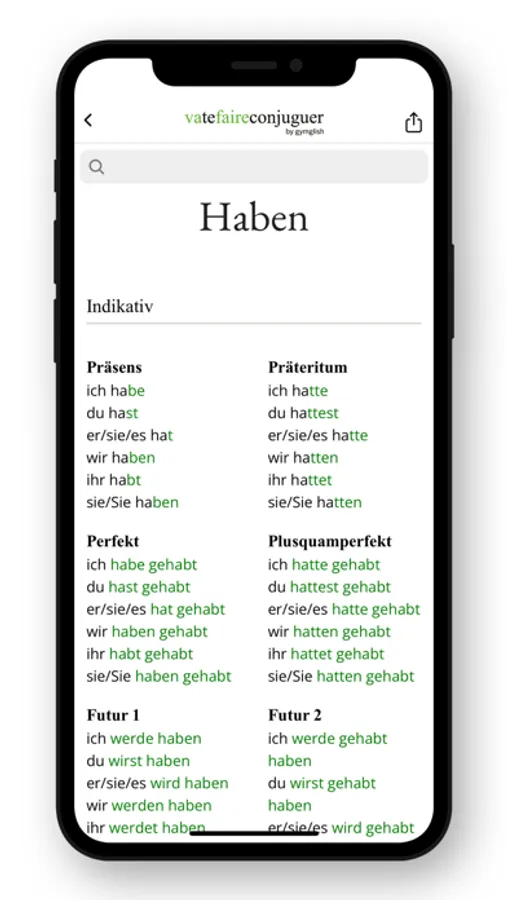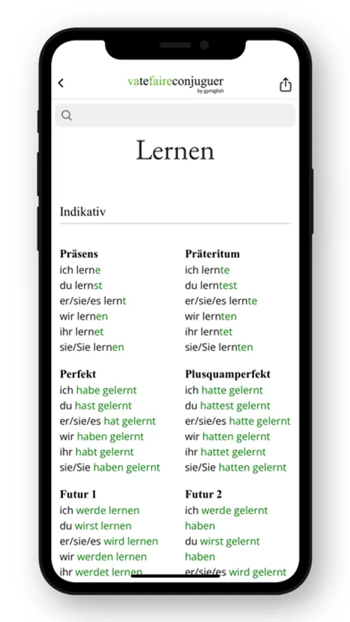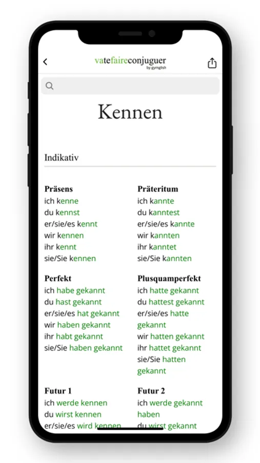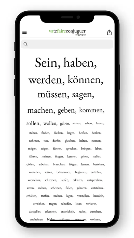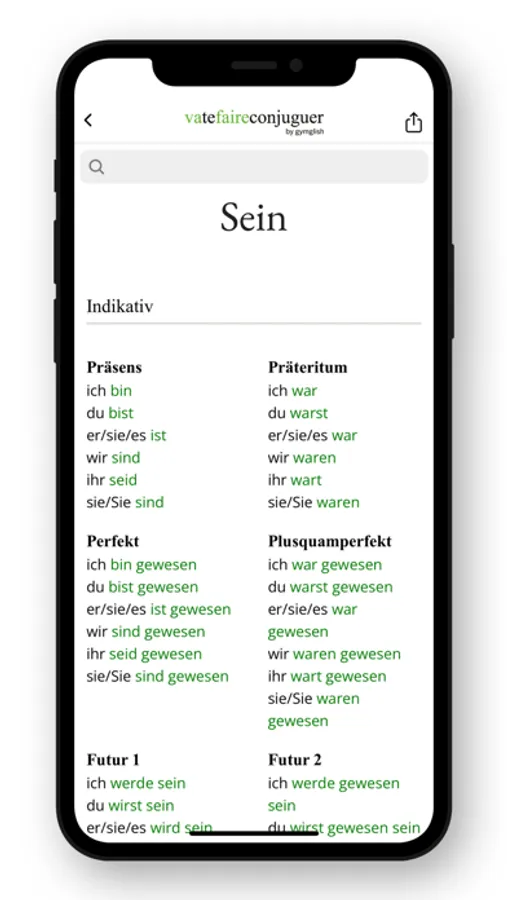 Vatefaireconjuguer, a free verb conjugation tool. Conjugate German verbs with ease using this handy app.