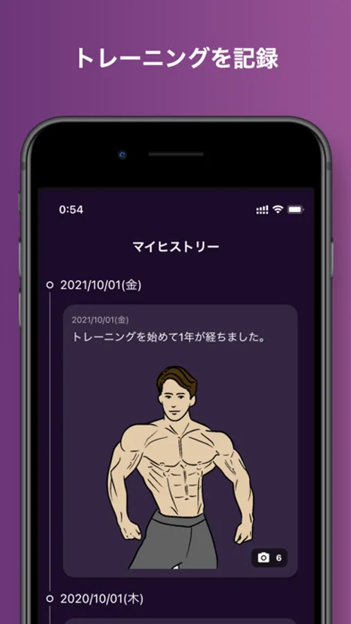投稿したトレーニング記録をもとに、あなただけのビフォーアフターを作成することができます。
