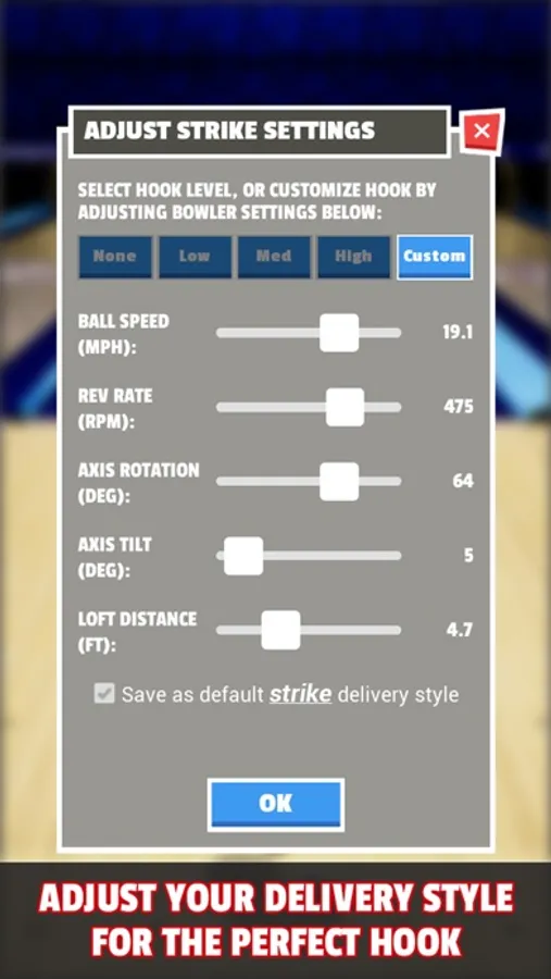 - Adjust your delivery to create the perfect hook for any lane condition. Precisely control your target, launch angle, ball speed, rev rate, axis rotation, axis tilt, and loft distance to create the best ball motion and the most strikes.