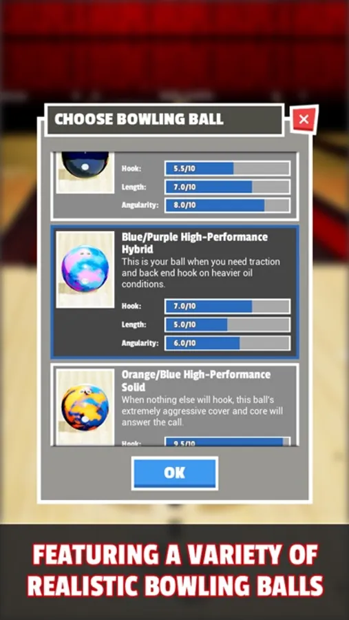 - A collection of bowling balls that is modeled after the types of balls found in the real world. From polyester to urethane to reactive resin, choose the right ball for your style to conquer any lane condition. And from accurate coverstock friction models to real-world mass properties, our bowling balls look and behave just like the real thing!