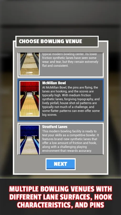 - Physically-accurate bowling environment. The lane, the pins, the balls, the gutters, and the oil patterns feature 100% accurate physical geometries and properties to provide an ultra-realistic bowling experience that is indistinguishable from the real thing.