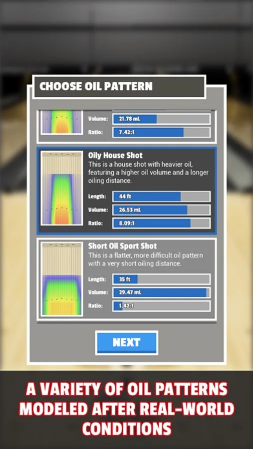 - A variety of oil patterns that are modeled after real-world conditions. See where the oil is located on the lane with our transparent oil pattern overlay feature.