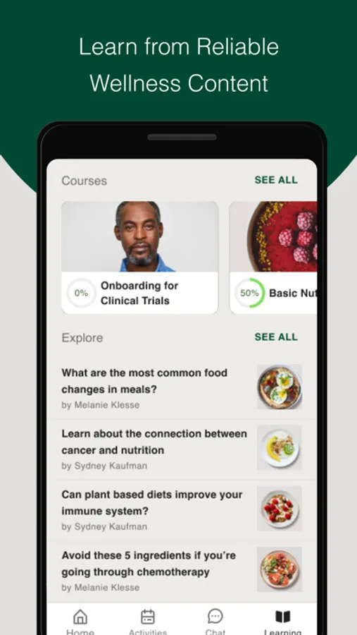 - Personalized learning about side effects, exercise, diet and other factors that could help improve your outcomes