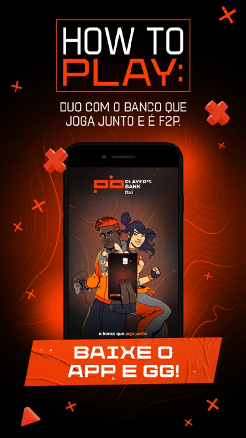 Um banco gamer do nosso jeito com cartão de crédito sem anuidade e conta digital grátis pra todo o squad! Ah, e de graça pra sempre, tá? Aqui não tem pegadinhas!