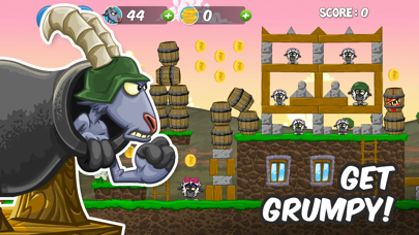 Take aim and launch your Grumpy Goats from their cannon to knockout the Sheep before they can build a fortress strong enough to be stopped!