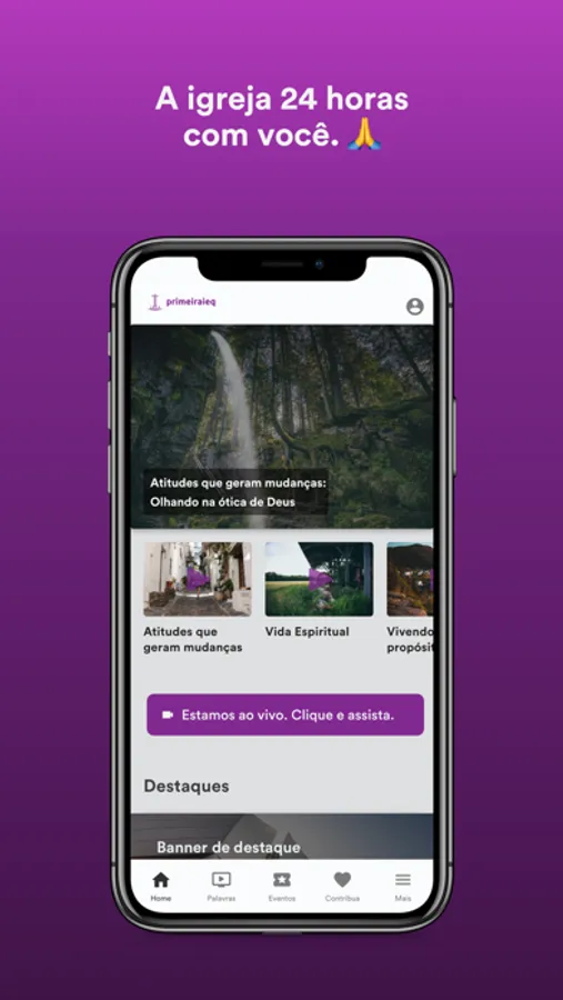 - Conecte-se com a igreja através dos grupos de interesse, receba conteúdo direcionado e obtenha sua carteirinha exclusiva.