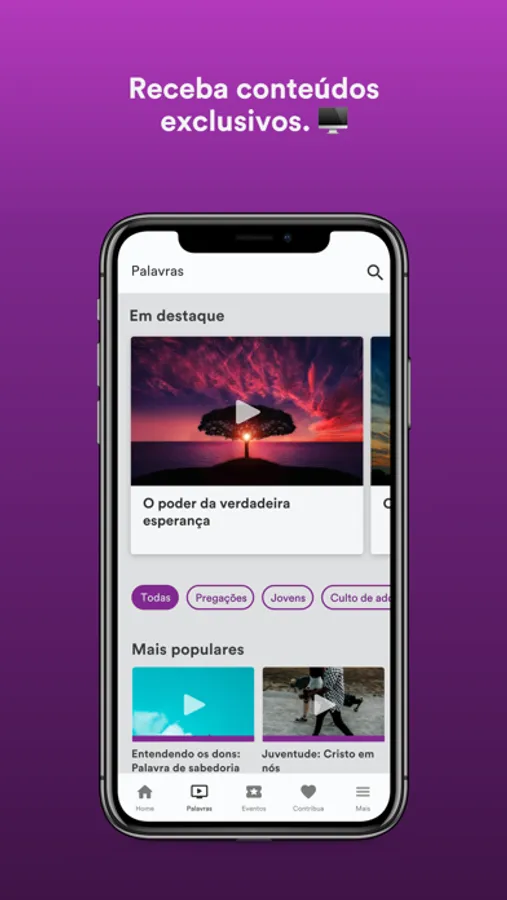 - Siga a agenda e fique por dentro de tudo que acontece na igreja, inscreva-se em eventos e tenha seus ingressos sempre com você.