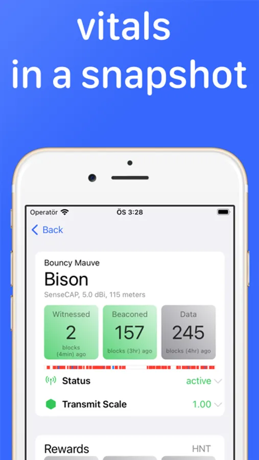 Stay up-to-date on your rewards with HeliumGeek. Our app highlights which activities earn you the most rewards and provides a recent rewards timeline. Analyze your coverage radius and see how far your hotspots reach. Rate the transmission scale of the hotspots you've witnessed.