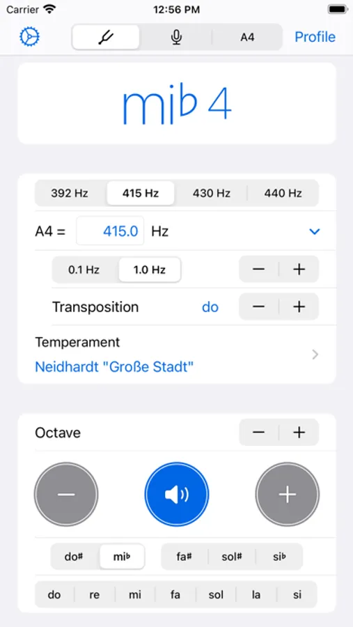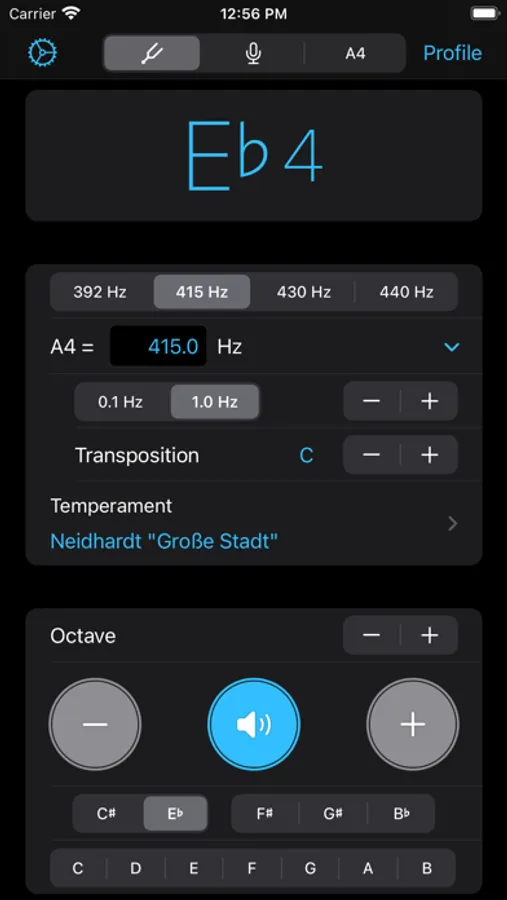 - Create profiles to quickly set pitch and temperament for frequently used settings.