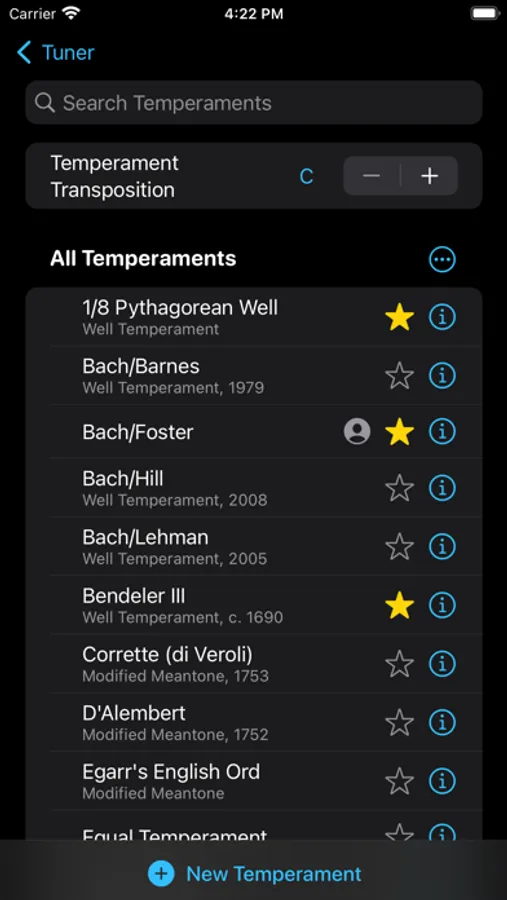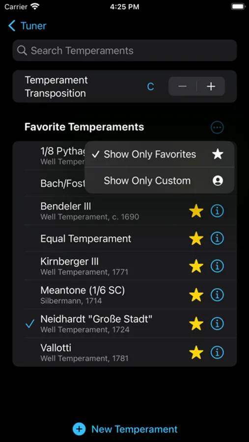 - About 30 built-in temperaments (see www.thomasfoster.org/novatuner for full list)