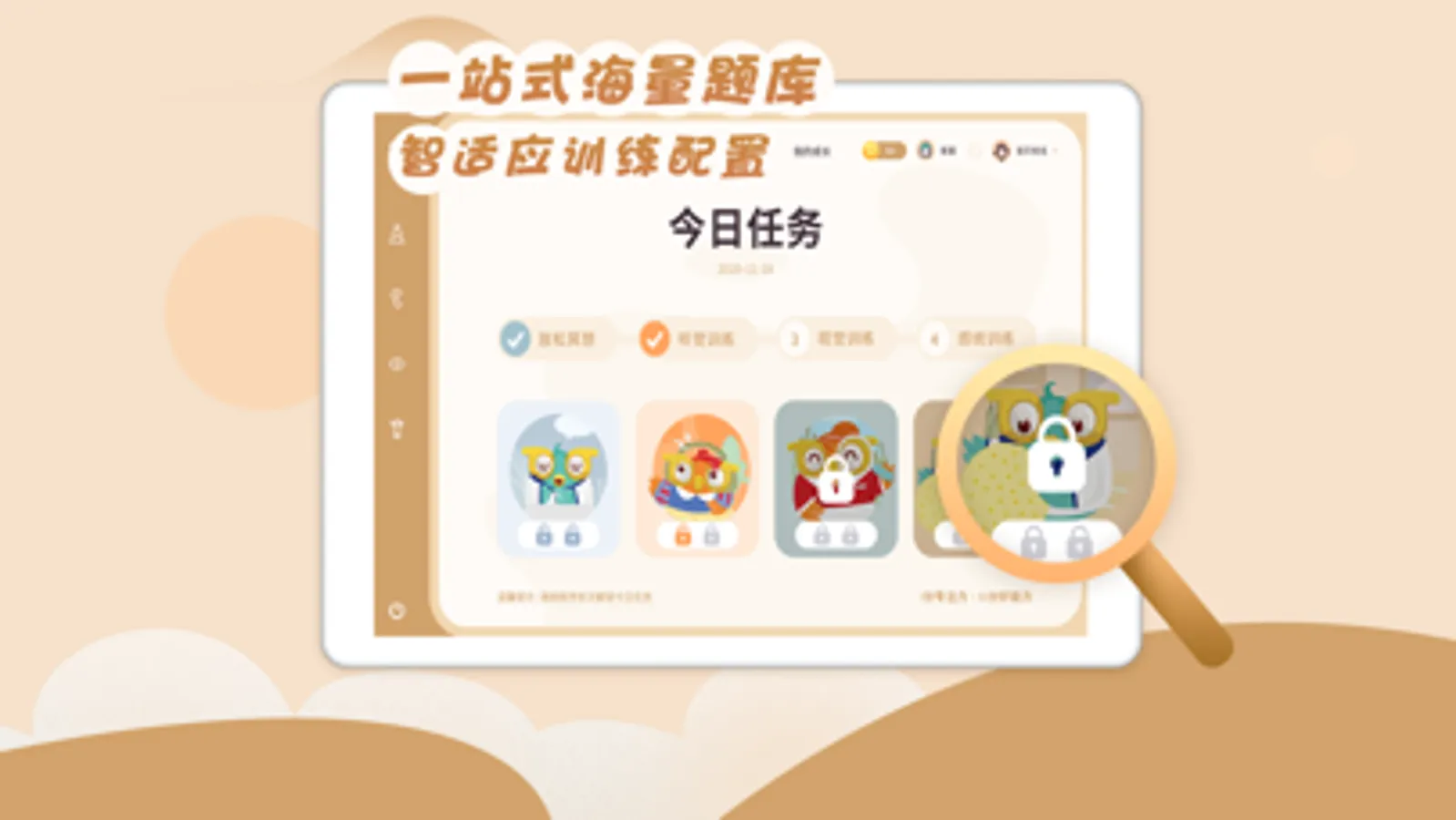 个性化配课:根据儿童的专注力测试结果进行一对一自动匹课,符合儿童的能力最近发展区,提供有针对性的专注力解决方案。
