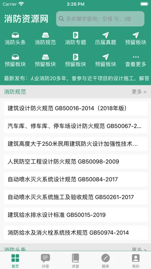 消防资源网,提供消防规范标准、消防疑难等技术咨询、超级检索服务,包括消防规范网、消防大讲堂、消防专题、消防问答、消防博客、消防头条等专业技术频道,消防人必备的工作平台。