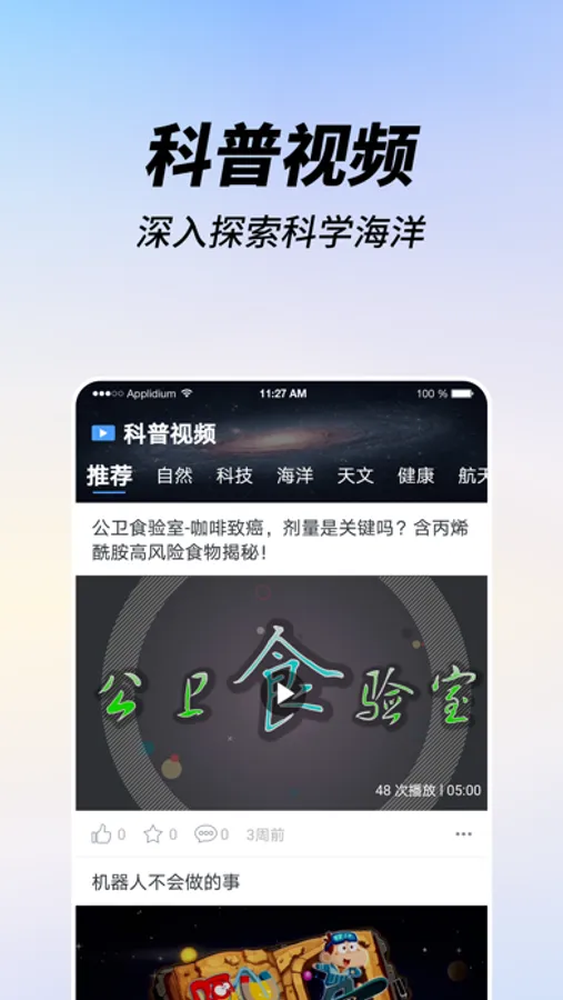 嗨科普是一个面向青少年进行科学宣传和互动的知识类APP。致力于在科普内容建设和表达形式上进行创新。借助互联网渠道,提供科学、专业、趣味的科普信息内容和相关资讯。让科普进校园,科学嗨起来!