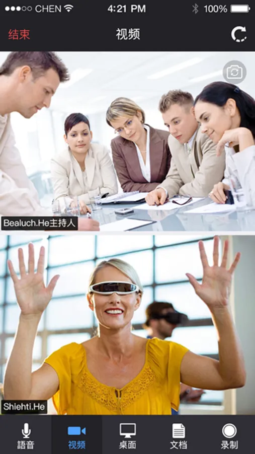 高质量的语音和视频, 同步参与在线文案讨论,双向视频功能让我们更好的参与会议。