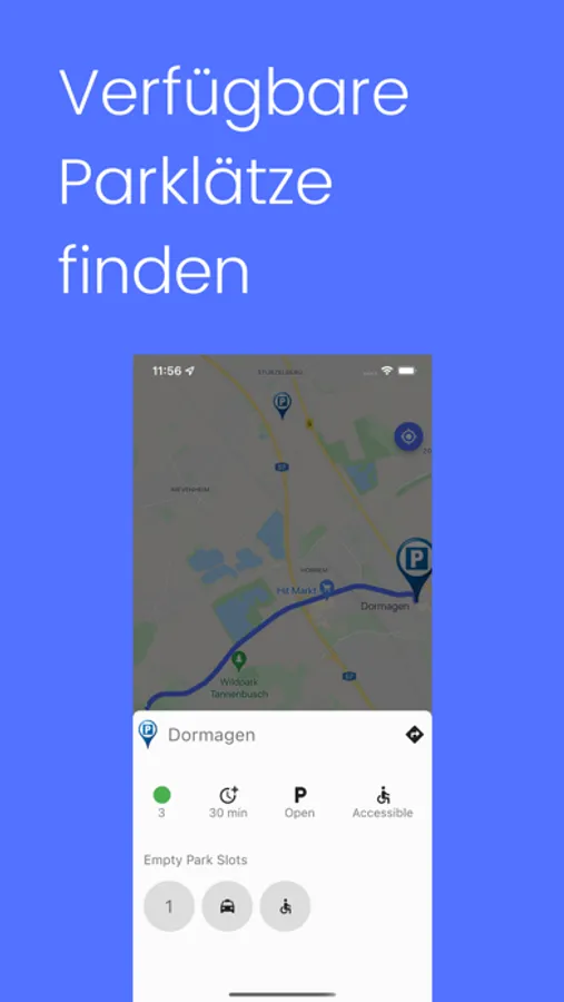 Somit ermöglichen wir dem Nutzer weniger Zeit bei der Parkplatzsuche und reduzieren damit den Stress beim Autofahren. Außerdem wird der Umwelt durch eine Reduzierung des CO2 Ausstoßes geholfen.