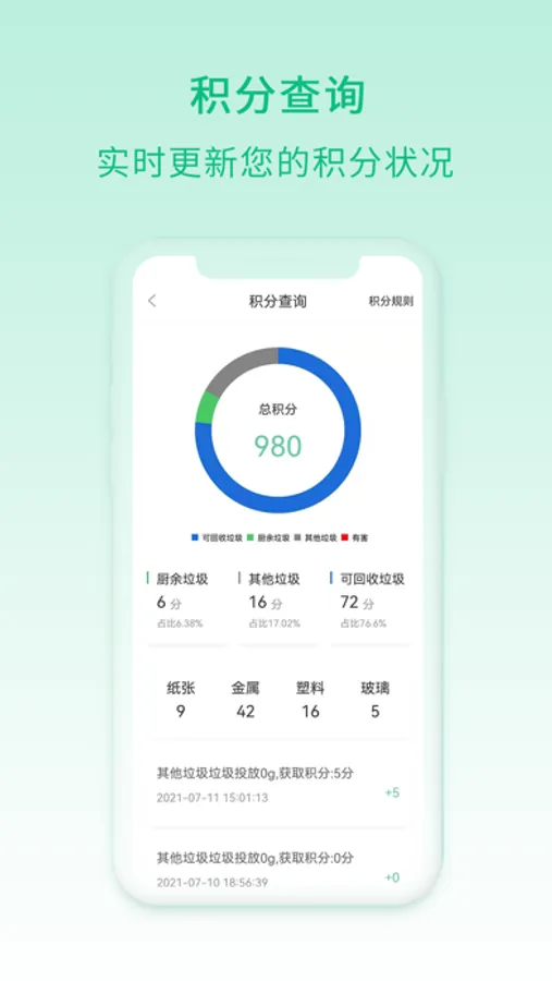 快分鸦App是一款智能垃圾分类回收的应用软件。软件具有在智能垃圾分类回收终端上垃圾分类投放后积分赚取、商城积分兑换、垃圾分类查询、垃圾分类知识普及、智能语音识别垃圾类型、大件废旧物品上门回收等功能.