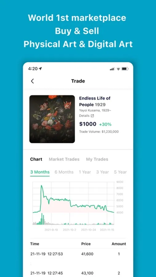2. Easy to Sell Art: Purchased pieces of the artwork can be monetized according to the number of pieces when the artwork is sold. Pieces of artwork can be traded on the Chérie app. You can use various options such as limit sales and market price sales for the pieces of art you have. Transaction information is as transparent as glass.