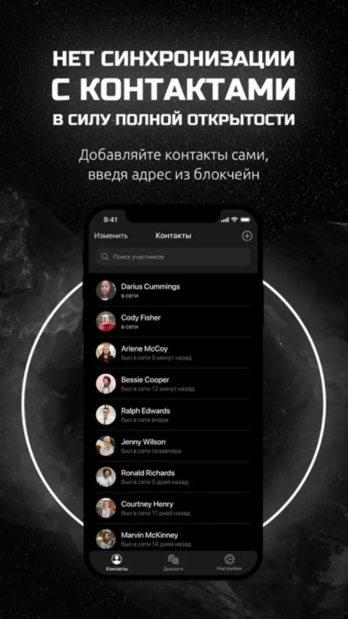 • Нет синхронизации с контактами на телефоне для полной безопасности.