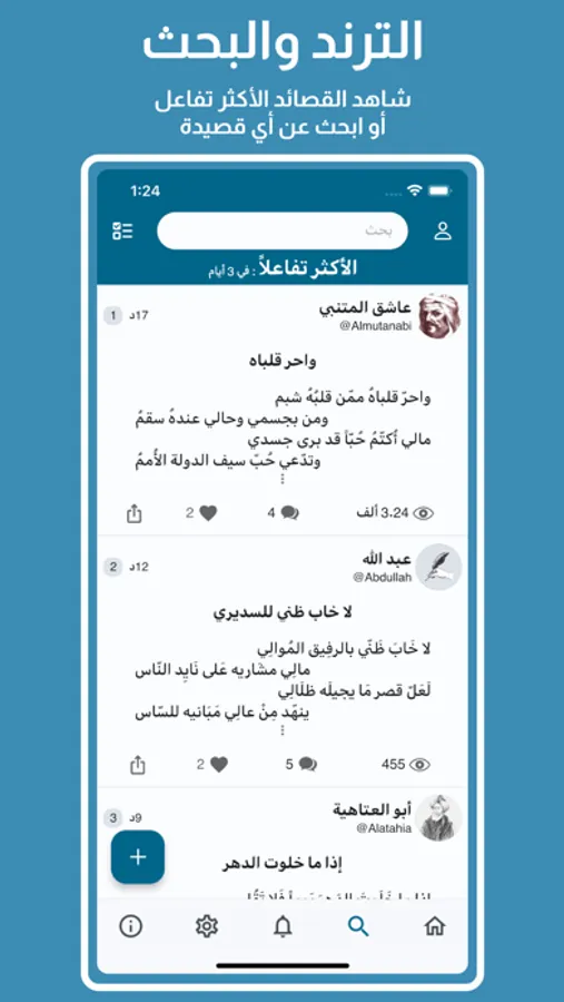 When you follow a poet, all his new poems will appear to you on the main screen.