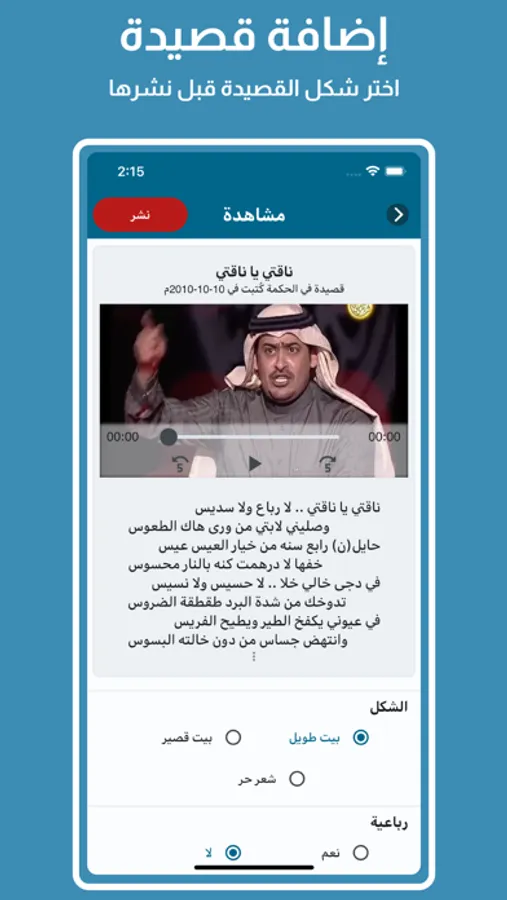 Where, the poem's verses are organized automatically. An audio and video can also be added.