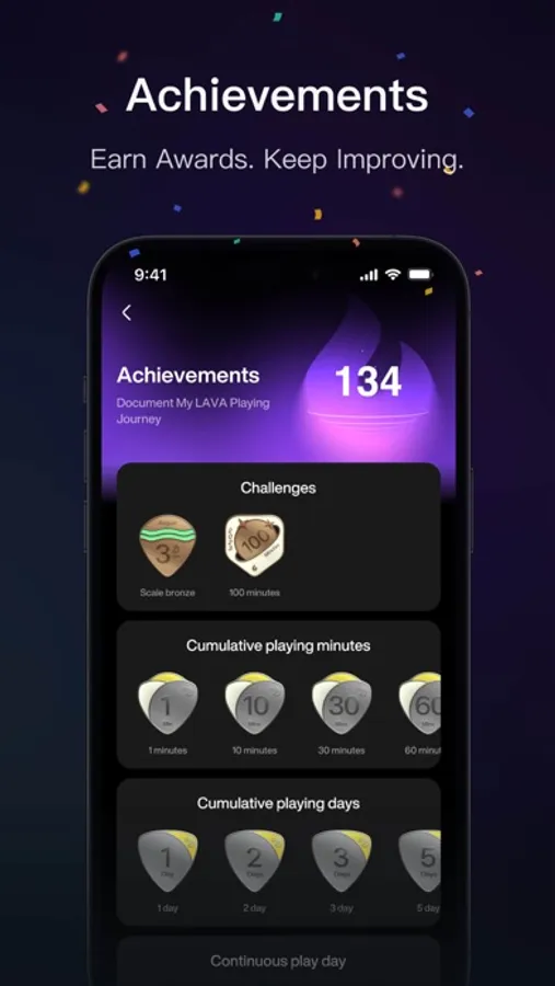 - View your playing and practice summary and the awards you earned for each achievement. Share the success with friends to celebrate.