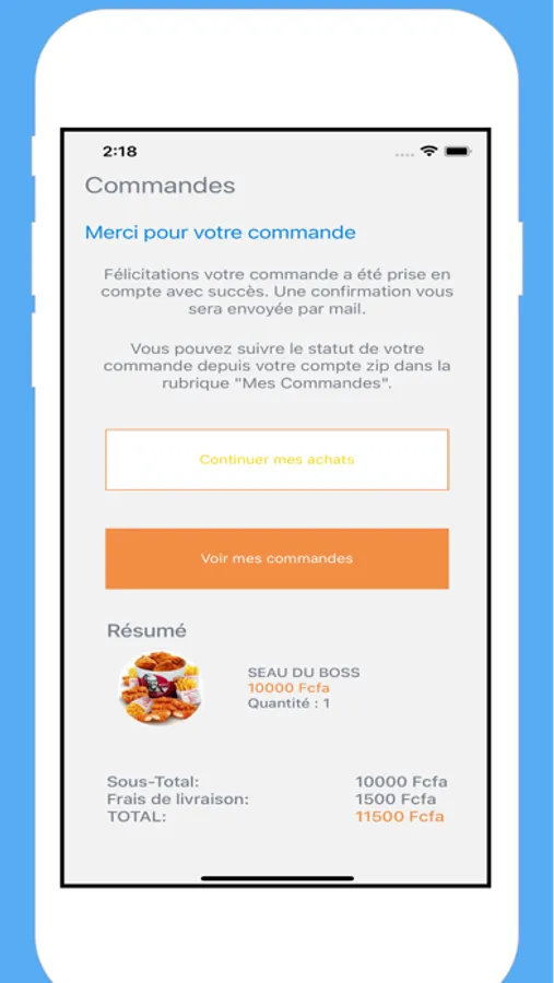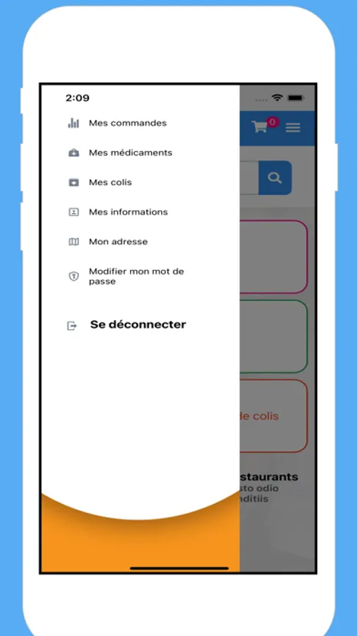 Elle vous donne encore la possibilité de voir vos différentes commandes , de réinitialiser votre mot de passe en cas d'oublie et aussi de vous déconnecter lorsque cela est nécessaire pour vous .