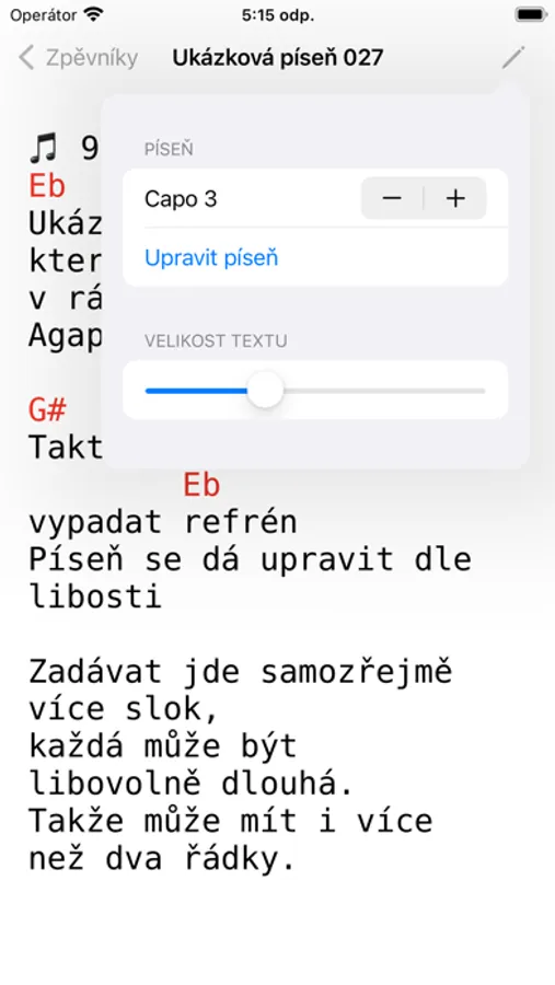 AgapeSongs je aplikace zpěvníku pro náboženská shromáždění. Umožňuje zobrazení a správu písní, jejich uspořádávání do zpěvníků a přiřazení zpěvníků k jednotlivým kapelám. V rámci kapely je pak možná správa členů a oprávnění (vedoucí spravuje členy a zpěvníky, hudebník spravuje písně, zpěvák pouze vidí). Písním lze nastavit jejich tempo a výchozí capo (transpozici), které lze následně upravovat, stejně jako velikost zobrazovaného textu nebo soukromé poznámky k dané písni.