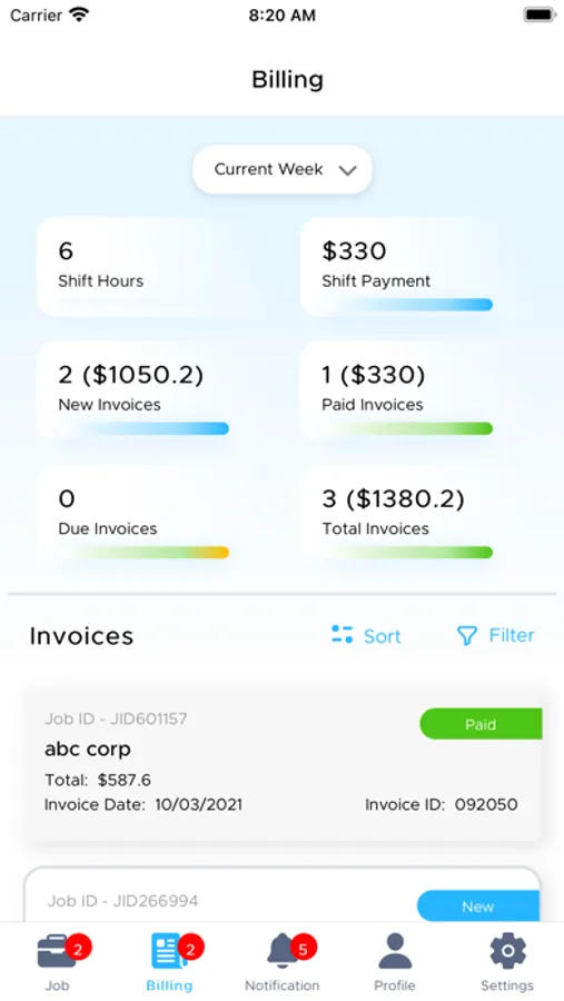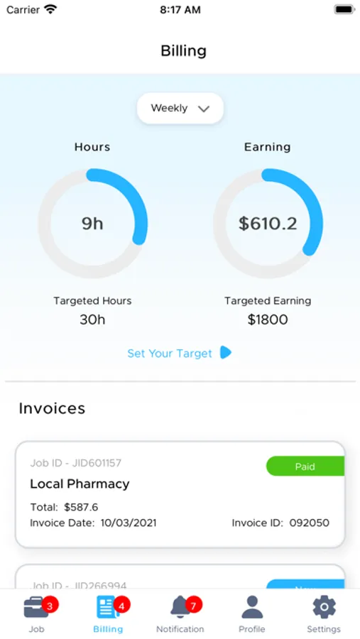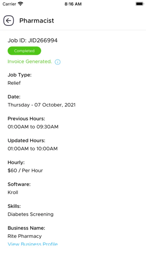 • Once hours are confirmed, invoice will be generated and shared with candidate and business user in app.