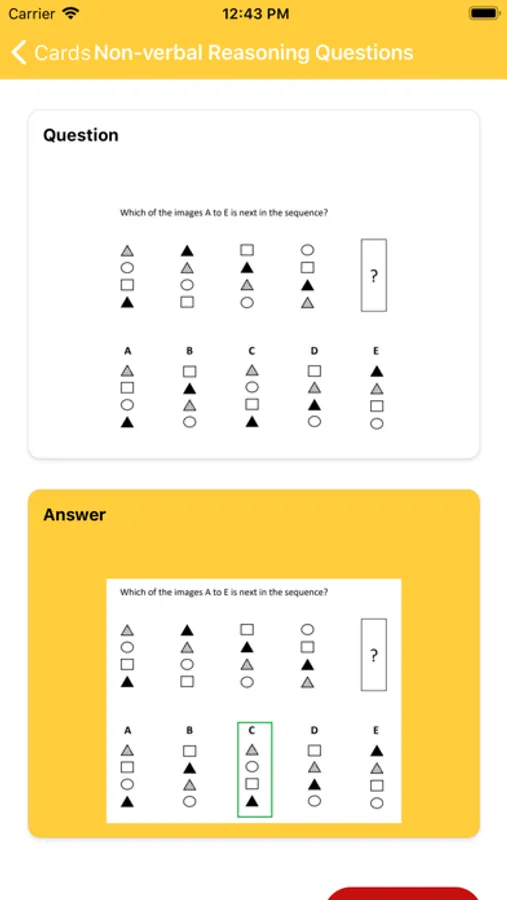 The more you practice the more you will be able to do in time. Questions are shown randomly, and you can see previously shown question by dragging the question screen down. For difficult questions it gives you how to find the answer.