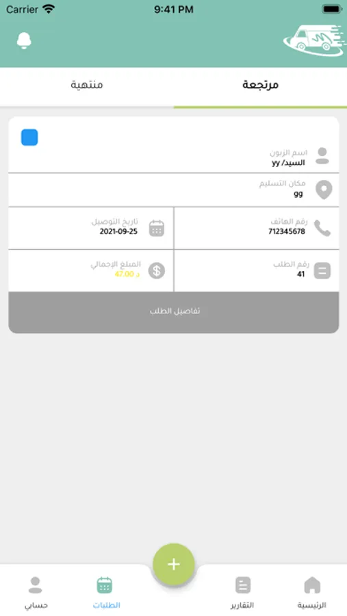 مرسولك جاهز للتوصيل الاسم اكبر برهان