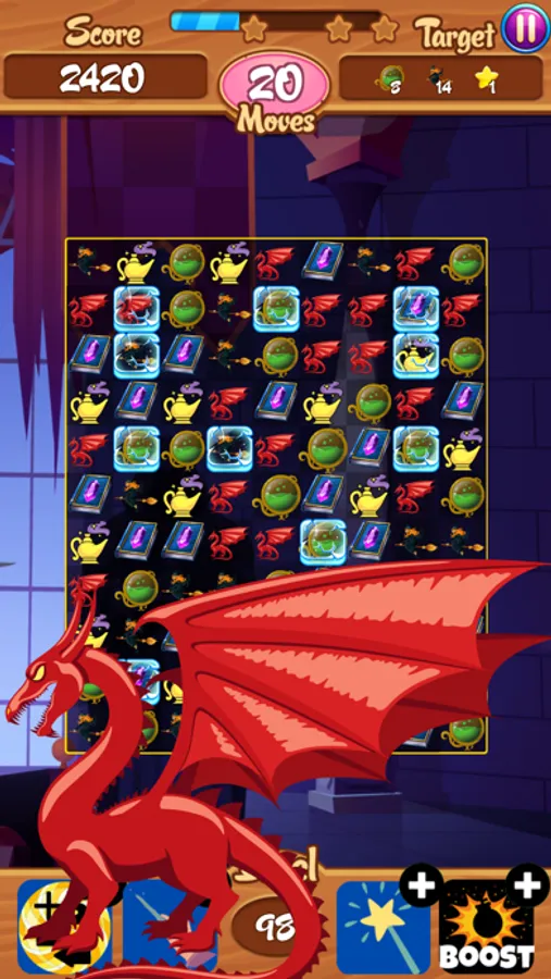 Match and crush the dragons, Magic objects in this puzzle adventure game to progress to the next level. Solve puzzles, crush dragons with smart moves and unlock new magic episodes. Plan your moves by matching 3 or more dragons and magic objects in a row, using boosters wisely in order to cross those extra sticky puzzles.